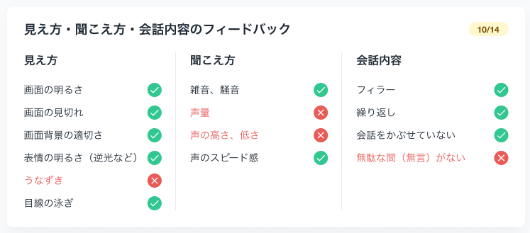 【1】相手に与えた印象を可視化。セールスとしての“好感度”を上げるための改善点がわかる。
