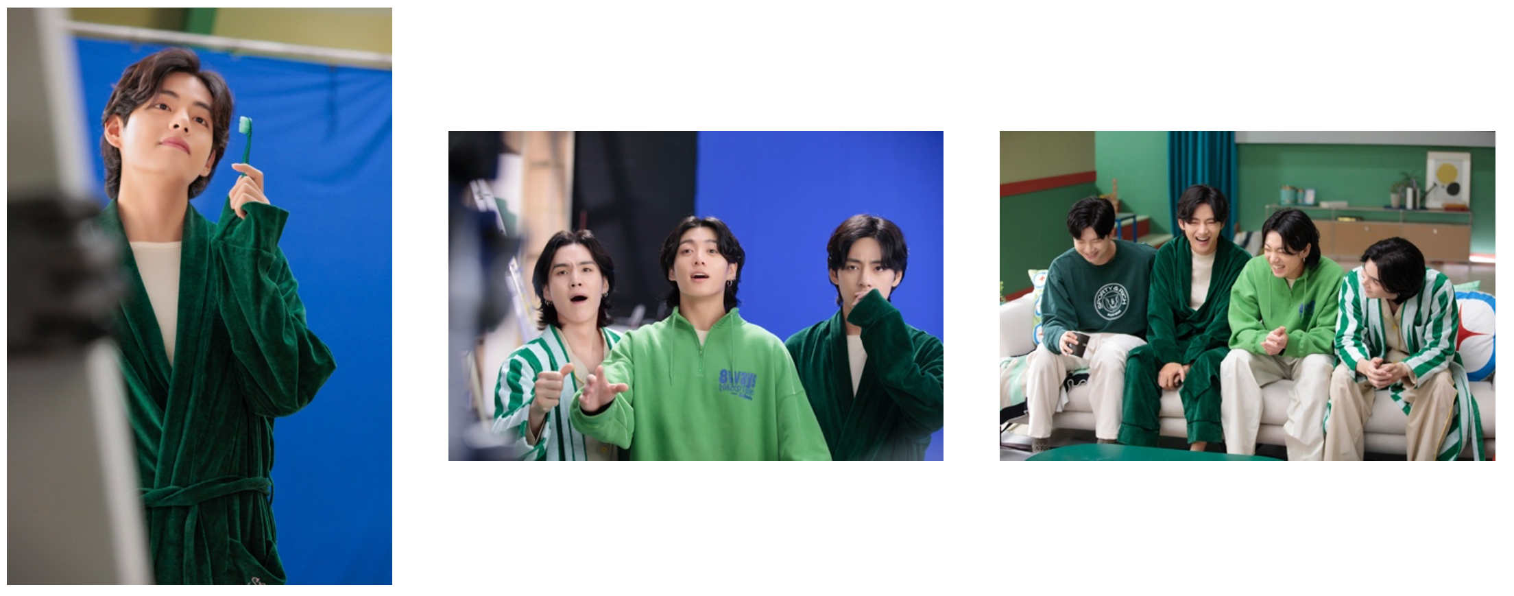 「食事のあと」篇では、お互いに演技指導をし合ったり、セリフを言い間違えたら笑顔で励まし合う様子が見られ、とても笑顔あふれる撮影現場となりました。また、J-HOPE、JIMIN、JUNG KOOKが流暢な日本語を披露してくれる場面もありました。