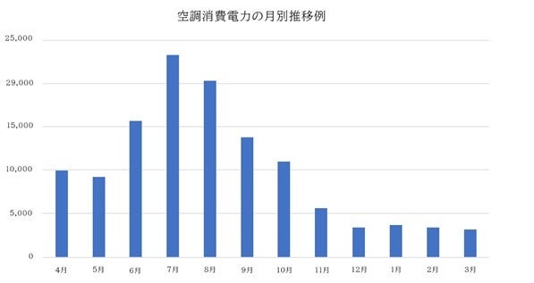 (図1:空調消費電力の月別推移例)