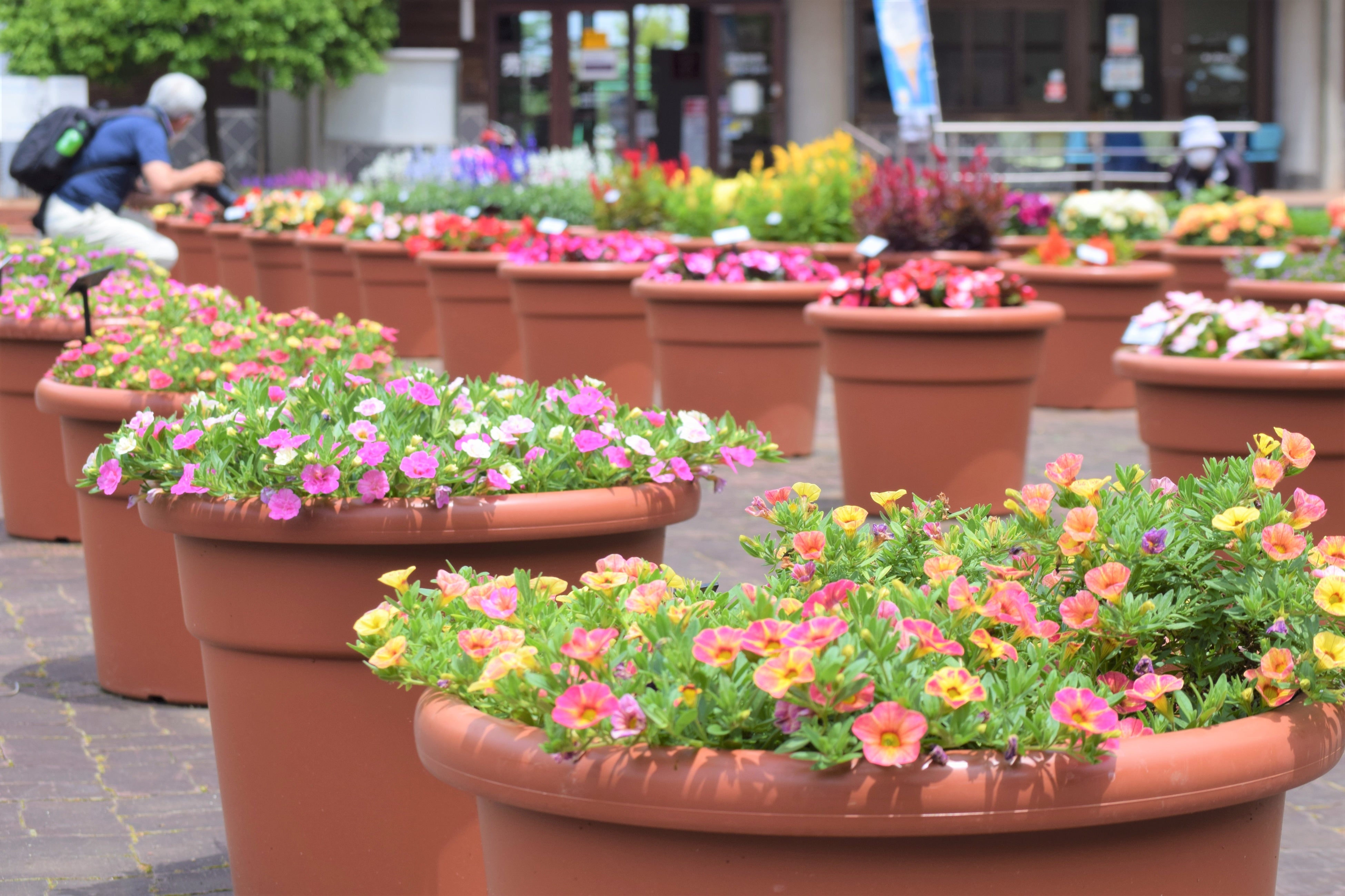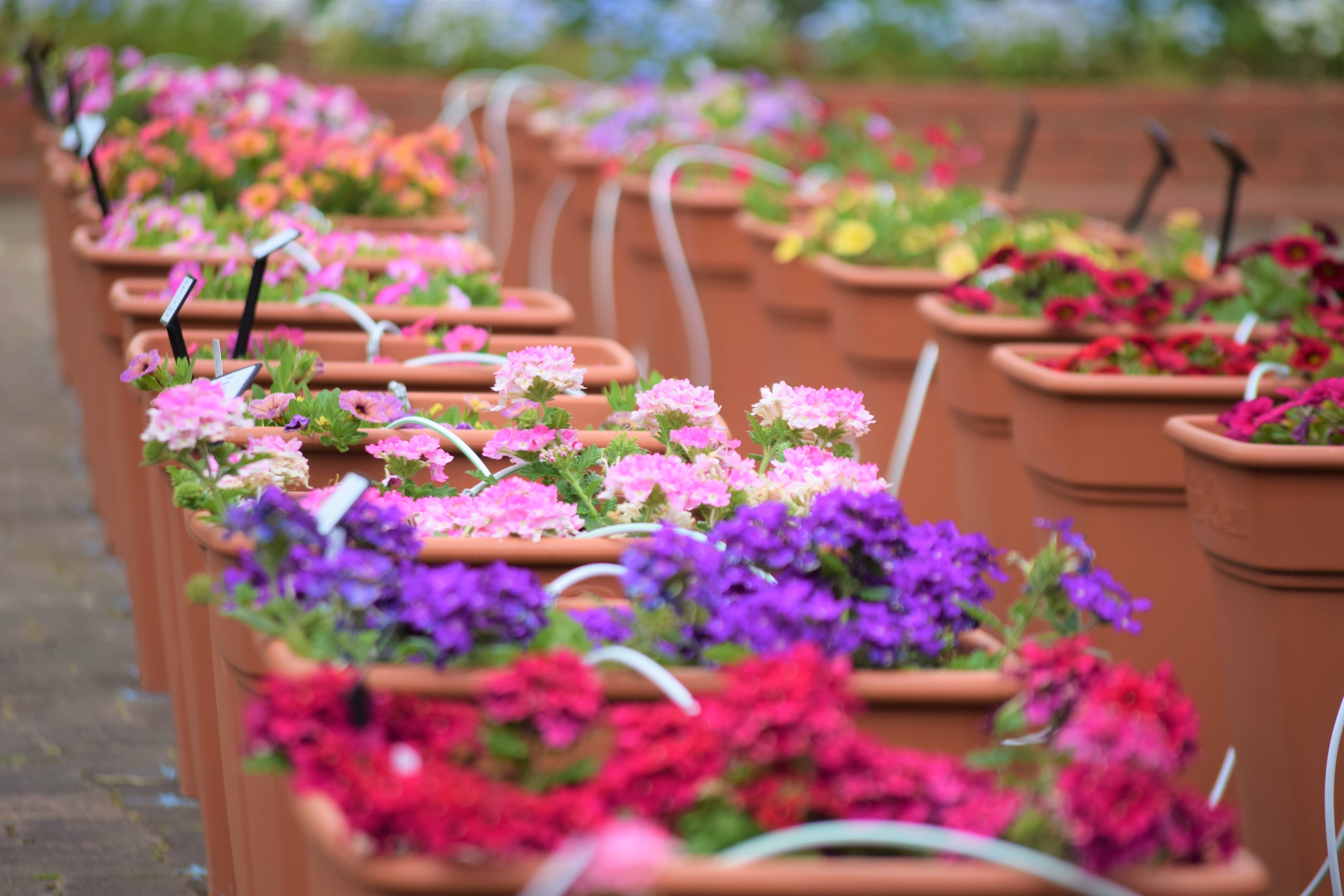 今まで関係者しか見ることのできなかった圃場(ほじょう)での「花や植物の活力や耐性に関する試験」を公園内で実施するもので、約500鉢のプランターが園内を彩ります。
