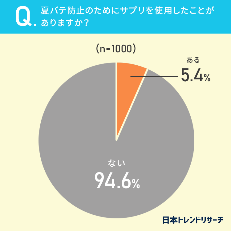 5.4%の方が、夏バテ防止のためにサプリを使用したことが「ある」と回答しました。