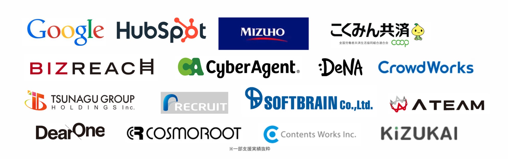 ナショナルクライアント、外資、国内ベンチャーから中小企業まで、複数の組織での支援実績があります。