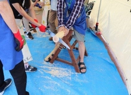 (4)横浜市水道局「道志村の間伐材を使った丸太切体験・コースター作り!!」