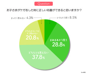 子どもがケガをした際に正しい処置ができそうかの質問に対して、 「とてもそう思う」と答えたのはわずか8.5%でした。