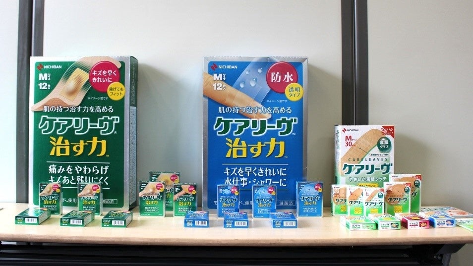 ニチバンは1997年に「肌へのやさしさ」と「フィット感」を兼ね備えた「ケアリーヴ(TM)」を発売しました。柔らかく通気性に優れた高密度ウレタン不織布素材のレギュラータイプに加え、防水性に優れた「ケアリーヴ(TM)防水タイプ」、丈夫なストレッチ布テープを採用した「ケアリーヴ(TM)パワー&フィット」、大きなキズもしっかりカバーできるシリーズ最大サイズ「ケアリーヴ(TM)超大判」、楽しく貼れる防水タイプの「ケアリーヴ(TM)キャラクター」を展開しています。(一般医療機器 救急絆創膏)