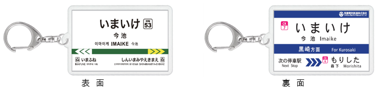 なお、当ツアー参加者限定の記念品として、両社に共通した『今池停留場(阪堺)』・『今池駅(筑鉄)』の駅名標を1つのキーホルダーにした限定グッズのほか、阪堺電車のオリジナルグッズを進呈いたします。