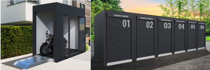 シンプルでスタイリッシュなデザインで、バイクや自転車を雨、盗難から守るスリムガレージ。 ご自身用の1台タイプから賃貸スペースの連結パターンなどさまざまなパターンをご提案できます。