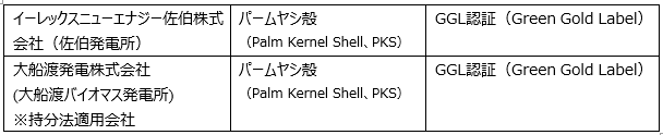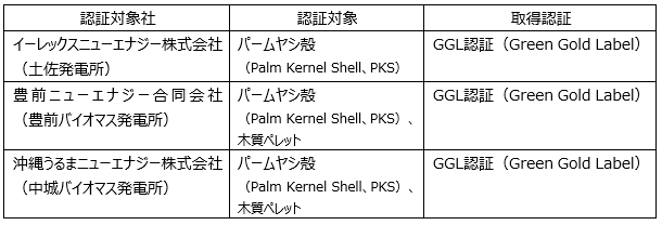 当社は、イーレックスニューエナジー佐伯株式会社において、2020年4月24日にいち早く発電事業者として日本で初めてPKSを対象としたGGL認証を取得し、燃料調達子会社のイーレックスシンガポールにおいても、2つの森林認証を取得しております。