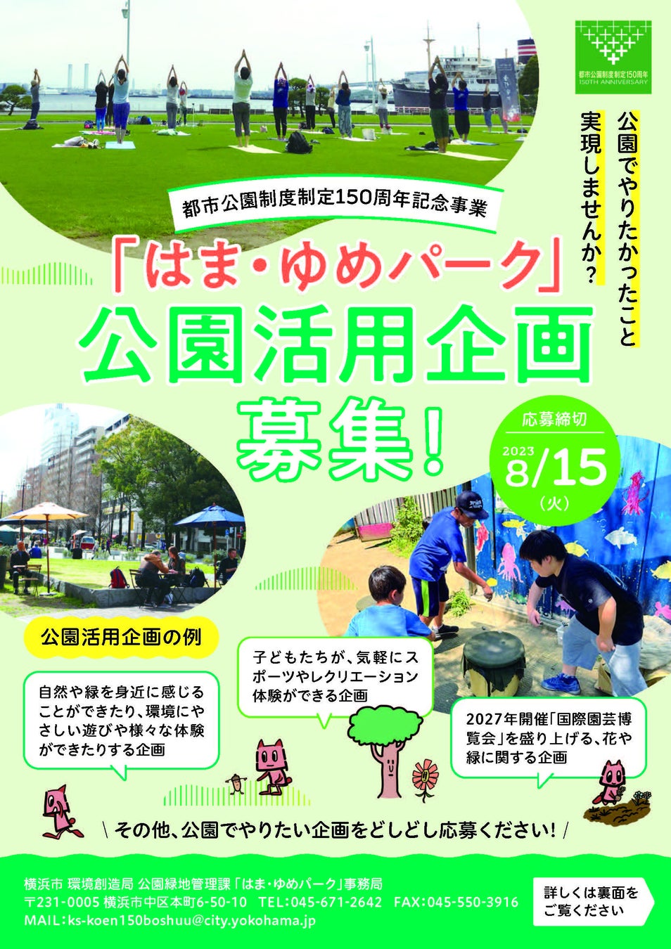 都市公園制度制定150周年記念事業「はま・ゆめパーク」公園活用企画公募事業