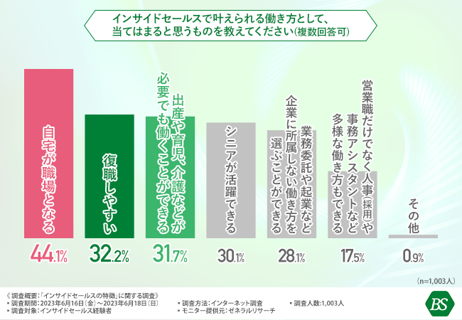 先程の調査で、インサイドセールスは、時間と場所に融通が利く職種だということがわかりました。産後に仕事復帰したい方やシニアの方も働きやすい仕事だと言えるのではないでしょうか。