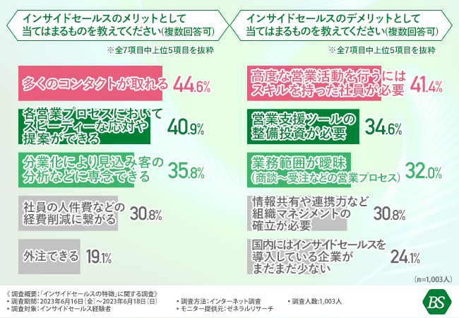 インサイドセールスは多くの顧客とコンタクトが取れる効果的な営業方法であるのに対し、スキルや知識を持つ社員がいない場合には、結果を出すのが難しいことが明らかになりました。