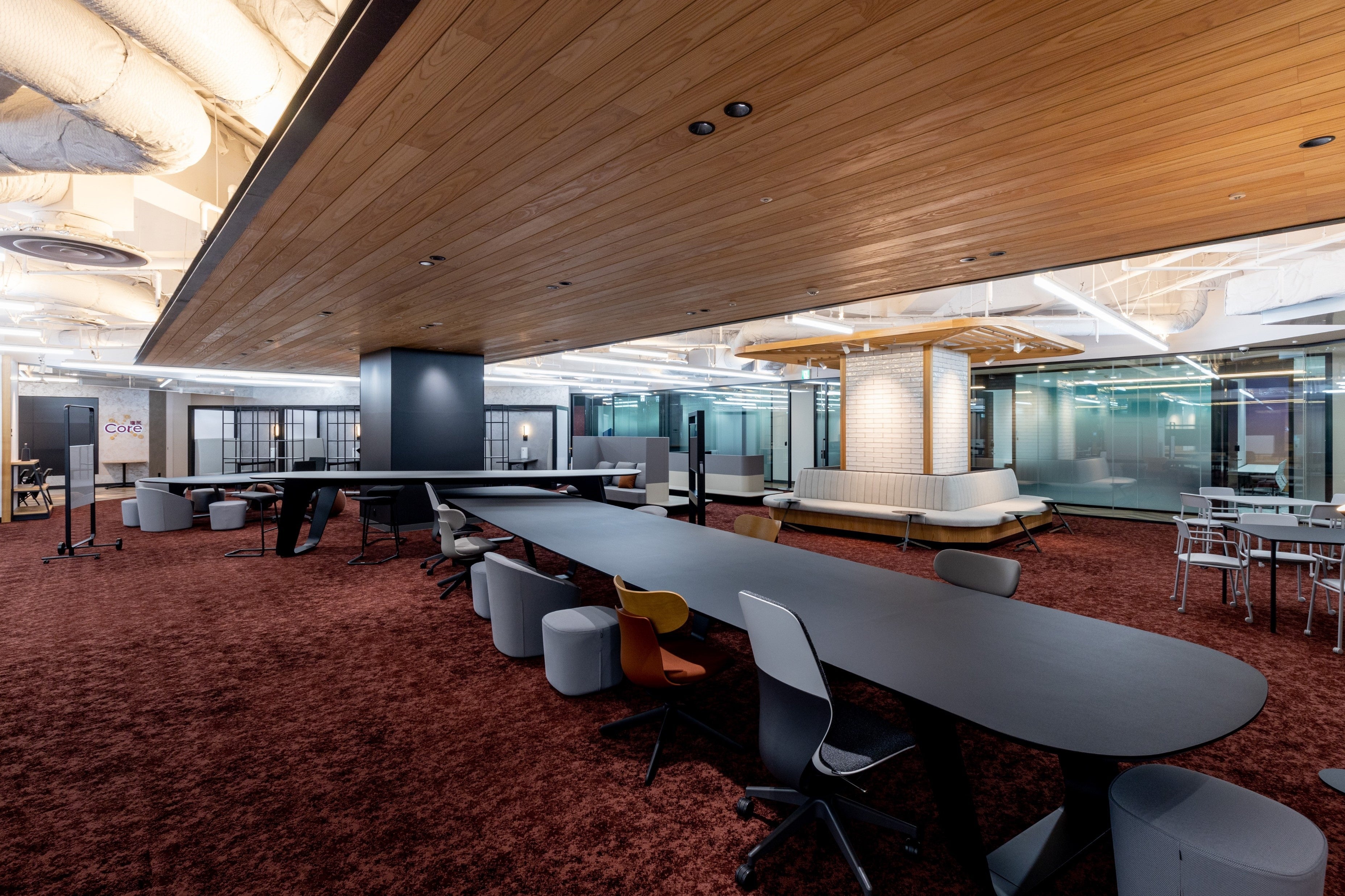 また、core塩尻に設けられた交流スペース、コワーキングスペースや専用オフィスなどの会員企業専用のオフィススペース、産官学民の共創のためのスペースなどに、幅広いコミュニケーションが生まれる環境づくりを可能にするクリエイティブファニチュアや、集中作業やオンライン会議に最適なフルクローズ型のワークブースなどのオカムラの家具が採用されました。