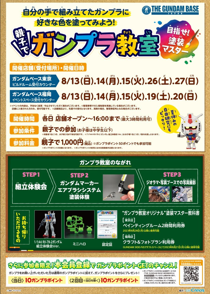 親子で1,000円(税込)で参加可能!詳しくはガンダムベース公式HPにて!