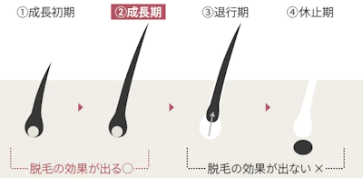 毛の生え変わるサイクル「毛周期」は脱毛施術を繰り返すことで一人ひとりで異なります。