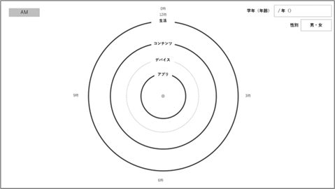 今回のモデル開発にあたっては、約50名のZ世代学生に協力いただき、1日の生活行動と並行的に動いている「コンテンツ/デバイス/アプリ」を可視化できる独自開発の「ながら行動実態シート」の活用と、その記入内容をZ世代自らが本人たちの目線で分析する「Z世代自己考察ワークショップ」を実施することで、表面的な行動スケジュールからではわからない”ながら行動”の背景にあるインサイトをとらえていきました。