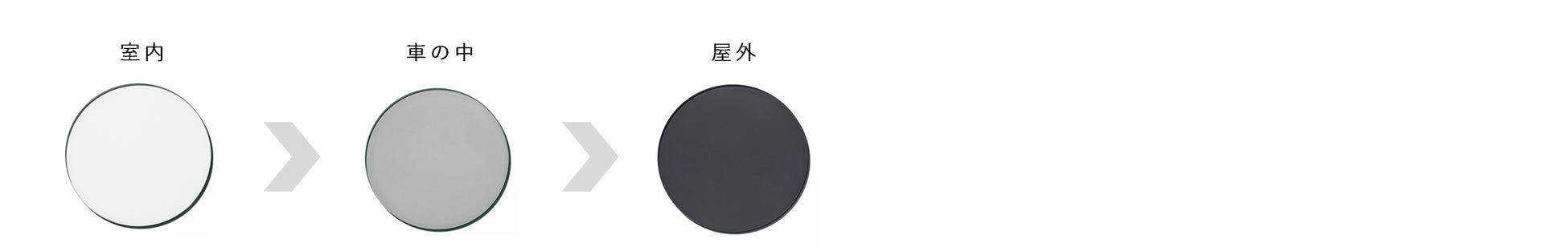※装用環境(気温・天候・紫外線量・太陽光とレンズの角度)の条件の違いによって、濃度変化および色調変化が異なります。