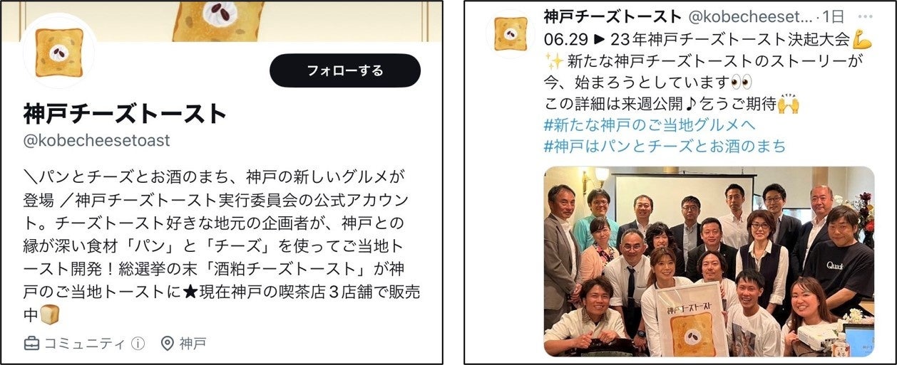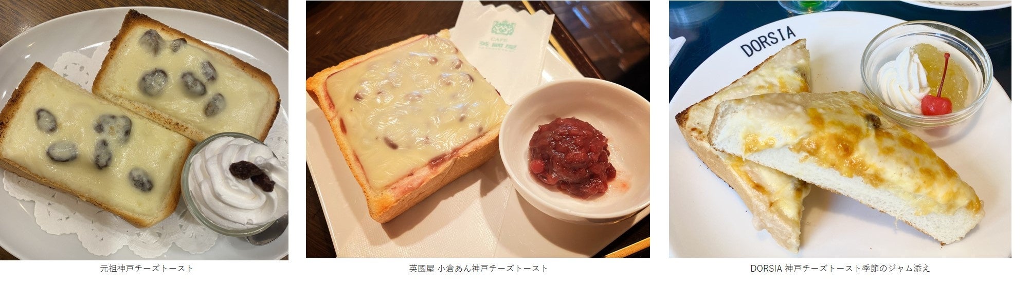 神戸チーズトーストは、“パンとチーズとお酒のまち神戸”から誕生した新たなご当地トーストです。定義としては「チーズ」と「酒粕」を使ったトースト。現在の販売中の店舗では、各店オリジナルの神戸チーズトーストを食べることが出来るほか、(「喫茶館英國屋 三宮センター街3丁目店」【小倉あん神戸チーズトースト】、「DORSIA」【神戸チーズトースト 季節のジャム添え】)、公式サイトではご家庭でも作ってもらえるように『元祖神戸チーズトースト』として実行委員会オリジナルのレシピも公開しています!今後は更なる販売店舗の拡大を目指し、地元の方にも観光客の方にも愛されるご当地トーストを目指していきます!