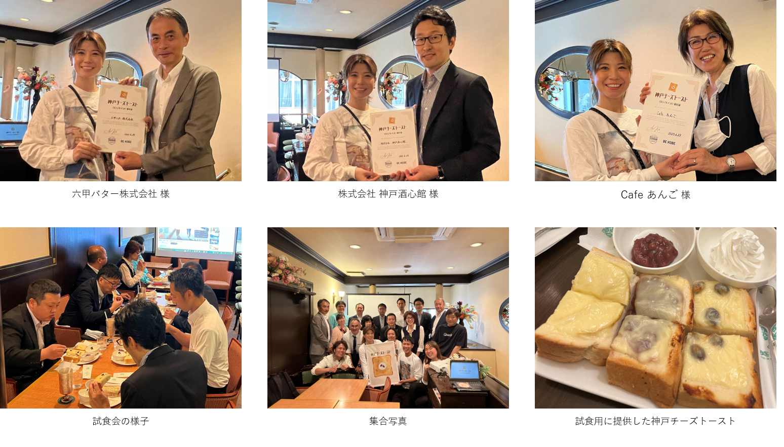 決起大会では、今回から新たにパートナーとして参画頂ける協力企業様・酒蔵様・販売店舗様に神戸チーズトーストの誕生のストーリーとその想いを共有し、実際に喫茶館英國屋 三宮センター街3丁目店にて提供されている「元祖神戸チーズトースト」、「小倉あん神戸チーズトースト」、さらに現在試作中の夏の新商品「神戸チーズトースト(広島レモン)」を試食して頂きました。その後、プロジェクトメンバー認定証の授与式も開催し、新たな連携の種が芽生える場となりました。