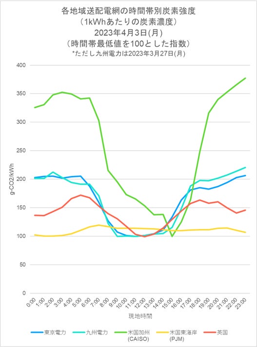 例えば、一部の地域や季節では、夜間であっても電力需要が少なく、原子力や風力などの非化石電源が豊富にある地域では、深夜時間は、場合によっては非化石比率が相対的に高くなります。このため、「夜間」からのタイムシフトならいつでもよいというわけにはいきません。