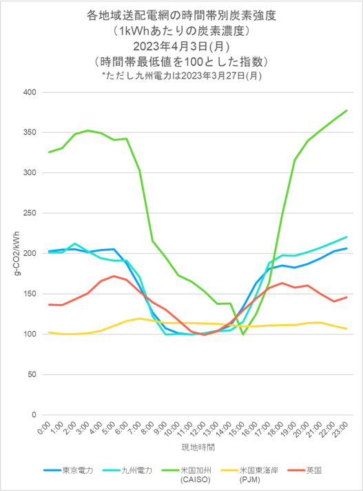 課題3については、米国カリフォルニア州政府機関がほぼリアルタイムで発出しているような5分毎の系統平均炭素強度実績を用いれば、消費者毎の炭素強度を精緻に算定可能です。