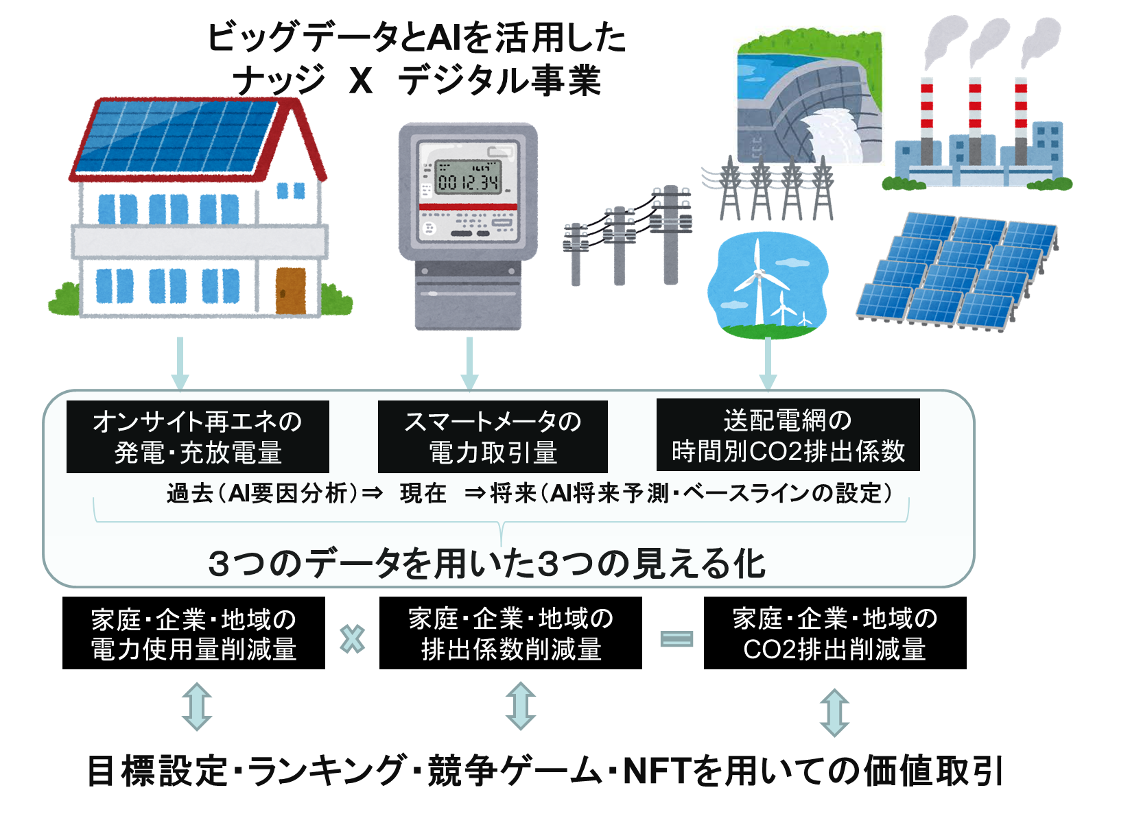 課題5に関しては、プロシューマには自身のCO2排出回避度スコアや、標準との比較(ランキングや偏差値)を示すことで、脱炭素への貢献を見える化して、非金銭的インセンティブによる行動変容の効果を高め、金銭的ポイント付与の費用対効果が高まります。