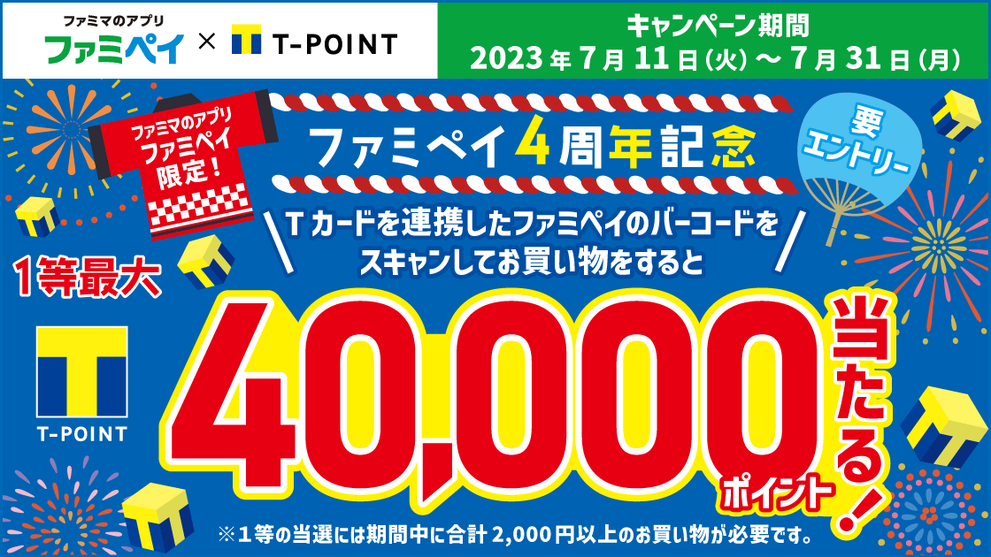 ファミペイ4周年記念キャンペーン 概要 https://cpn.tsite.jp/detail/entry90725999?utm_source=other&utm_medium=prtimes&utm_campaign=fm20230710_00052_cp
