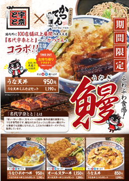 「できたてのかつ丼・天丼をもっと手軽に」がコンセプトの「かつてん」と、“神コスパ”としてSNSを中心に話題を集める鰻専門店「名代 宇奈とと」が、強力タッグ!「かつてん」店舗にてかつ丼・天丼と鰻のコラボレーションメニューを7月11日から期間限定で販売します。