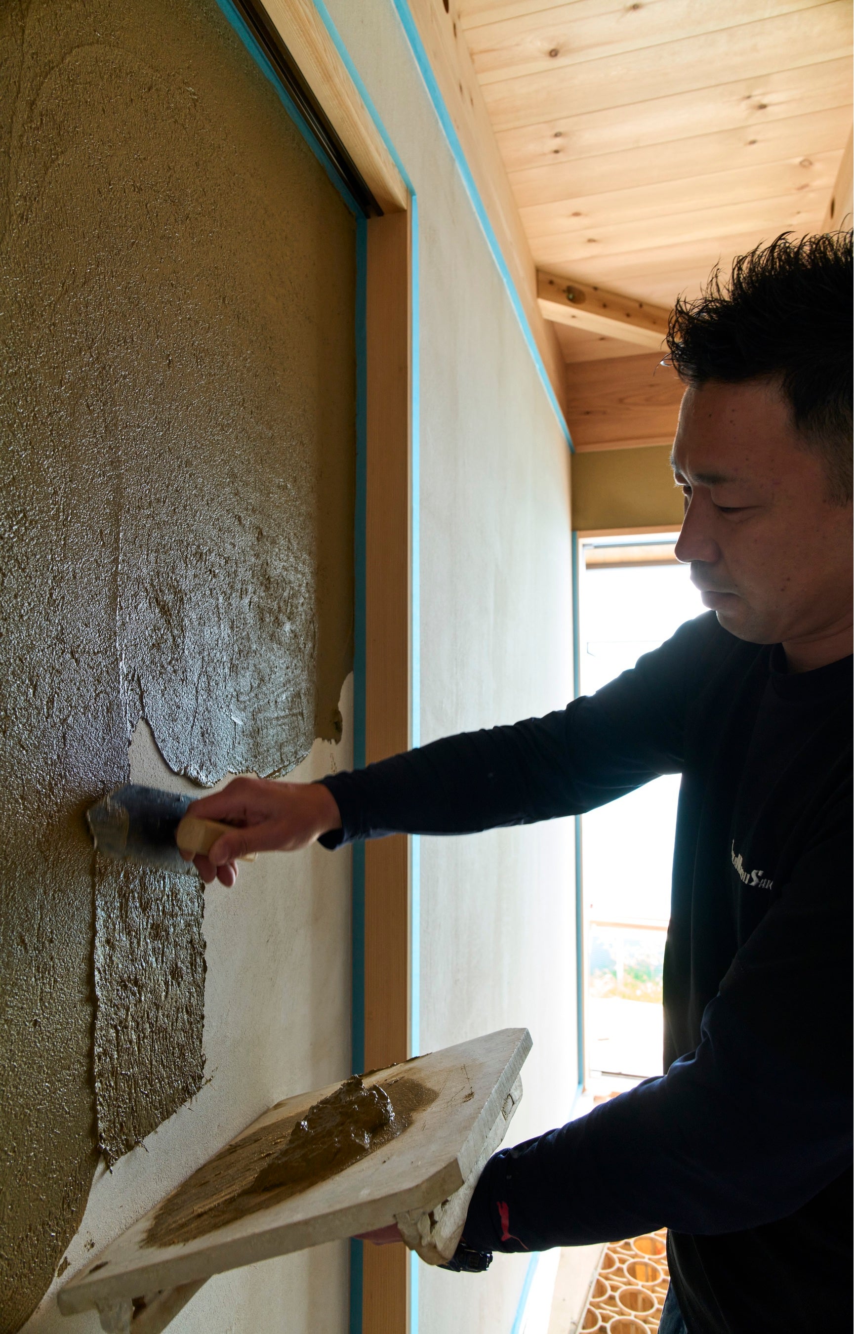 当社が手がけるすべての家は、合板やサイディングのような工業製品を使わず、ごく当たり前に、重油を使用せず乾燥させた地元九州の木材、漆喰、羊毛100%断熱材を用いて、職人の手仕事によってつくっています。