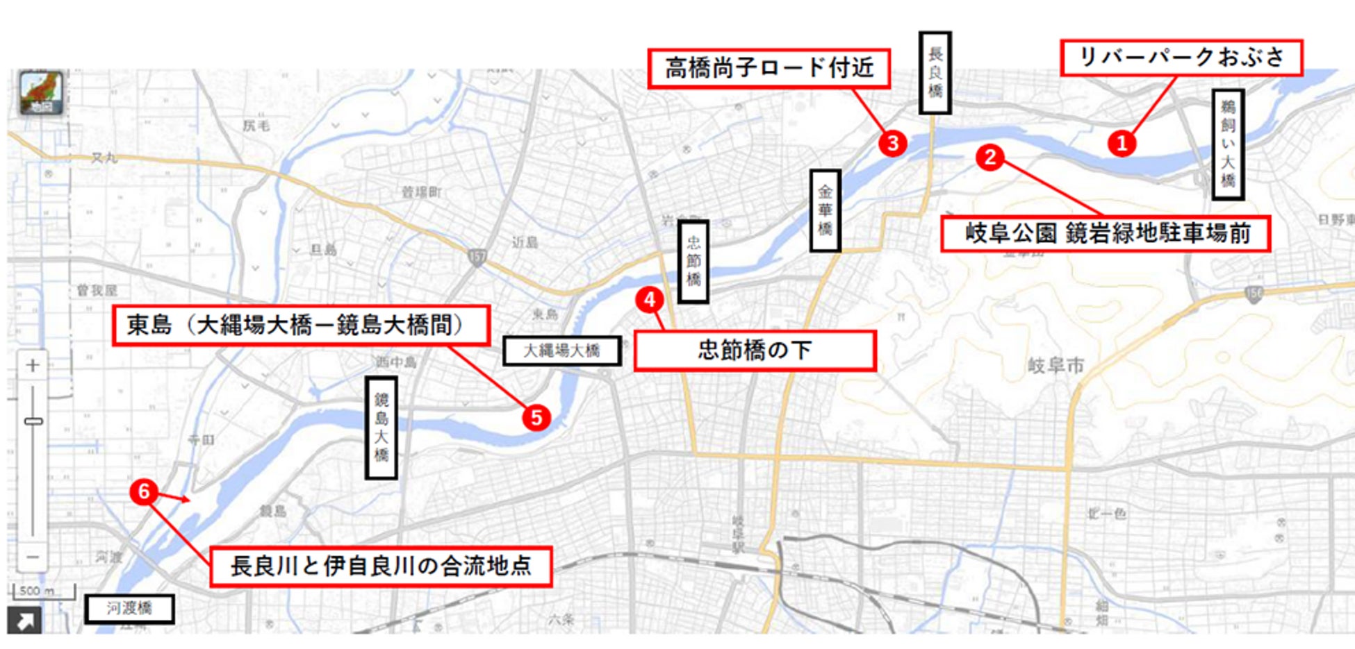 ・開催場所 岐阜市内 長良川下流域にて6地点