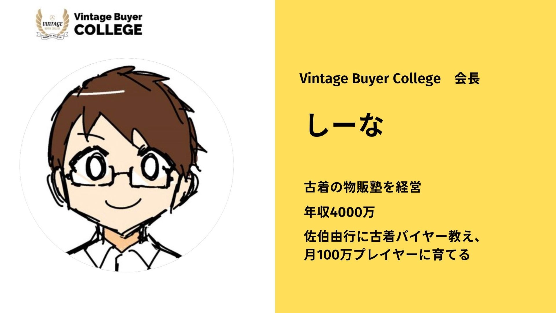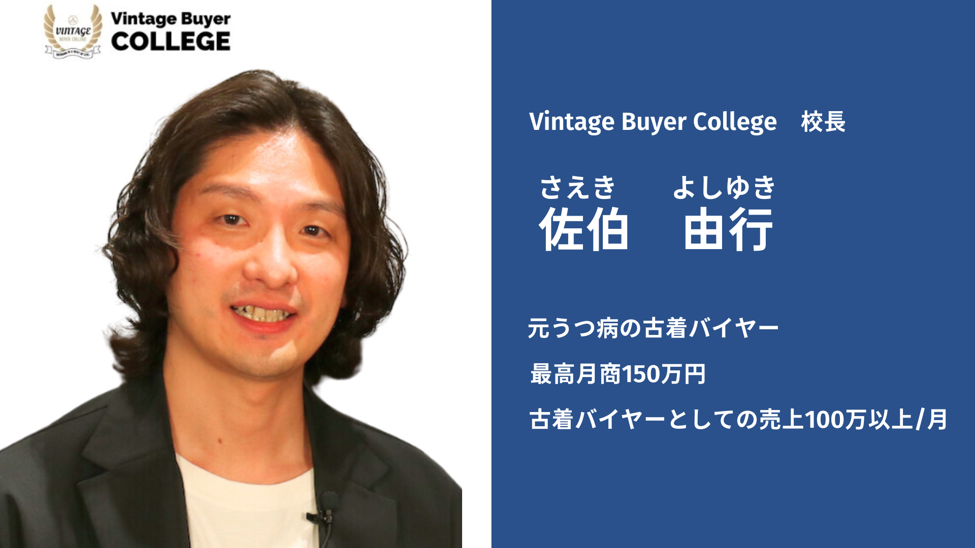 そう語るのは、Vintage Buyer Collegeの校長である佐伯由行(38)さん。