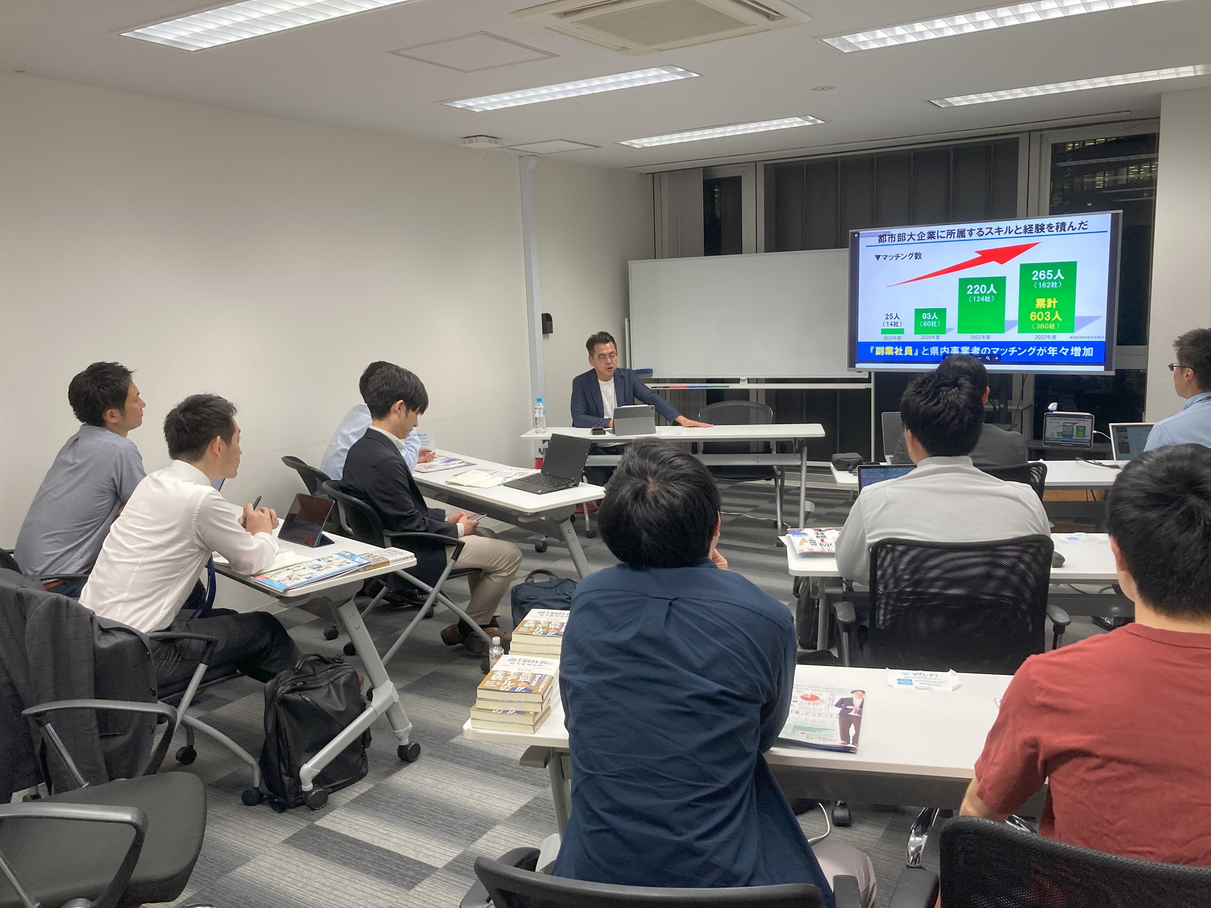 【内容】「週1副社⻑」プロジェクトのオーガナイザーである松井氏に、事業に込めた想いや副業⼈材(複業人材)に求めることなどを講演いただきました。また、実際に副業人材を受け入れている鳥取県内企業の株式会社金居商店の金居社長にもご登壇いただき、企業としてのメリットや経営課題の解決に向けた副業人材との具体的な取組みについてお伺いしました。