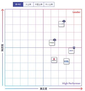 本アワードでは、2022年6月までに集まったレビューをもとに、同一カテゴリーの中で満足度と認知度の双方が優れた製品を「Leader」に、満足度が優れた製品を「High Performer」として表彰、バッジを発行しています