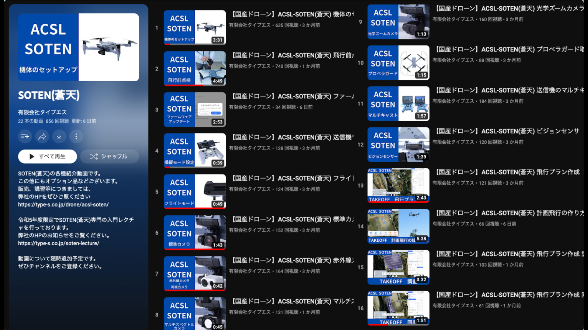 上記の再生リストにあるSOTEN飛行前点検の動画です。