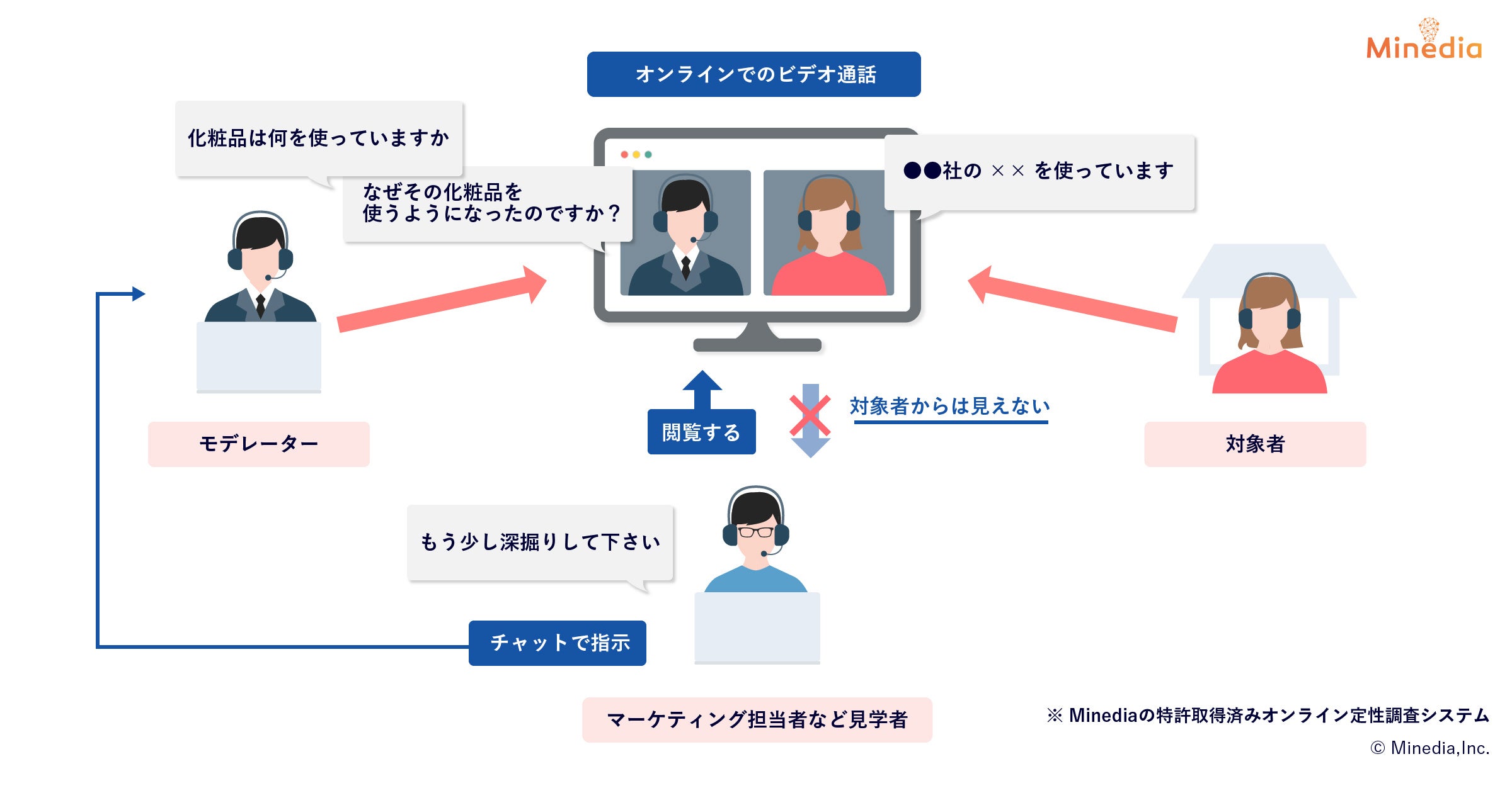 ・オンライン上にミラールームを再現したデプス、グループインタビュー機能