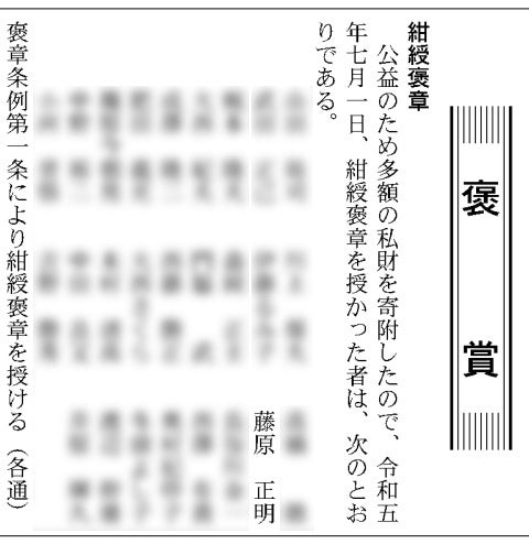 公益のために私財を寄付し、功績が顕著な個人または法人・団体に対し、日本政府より授与されるものです。