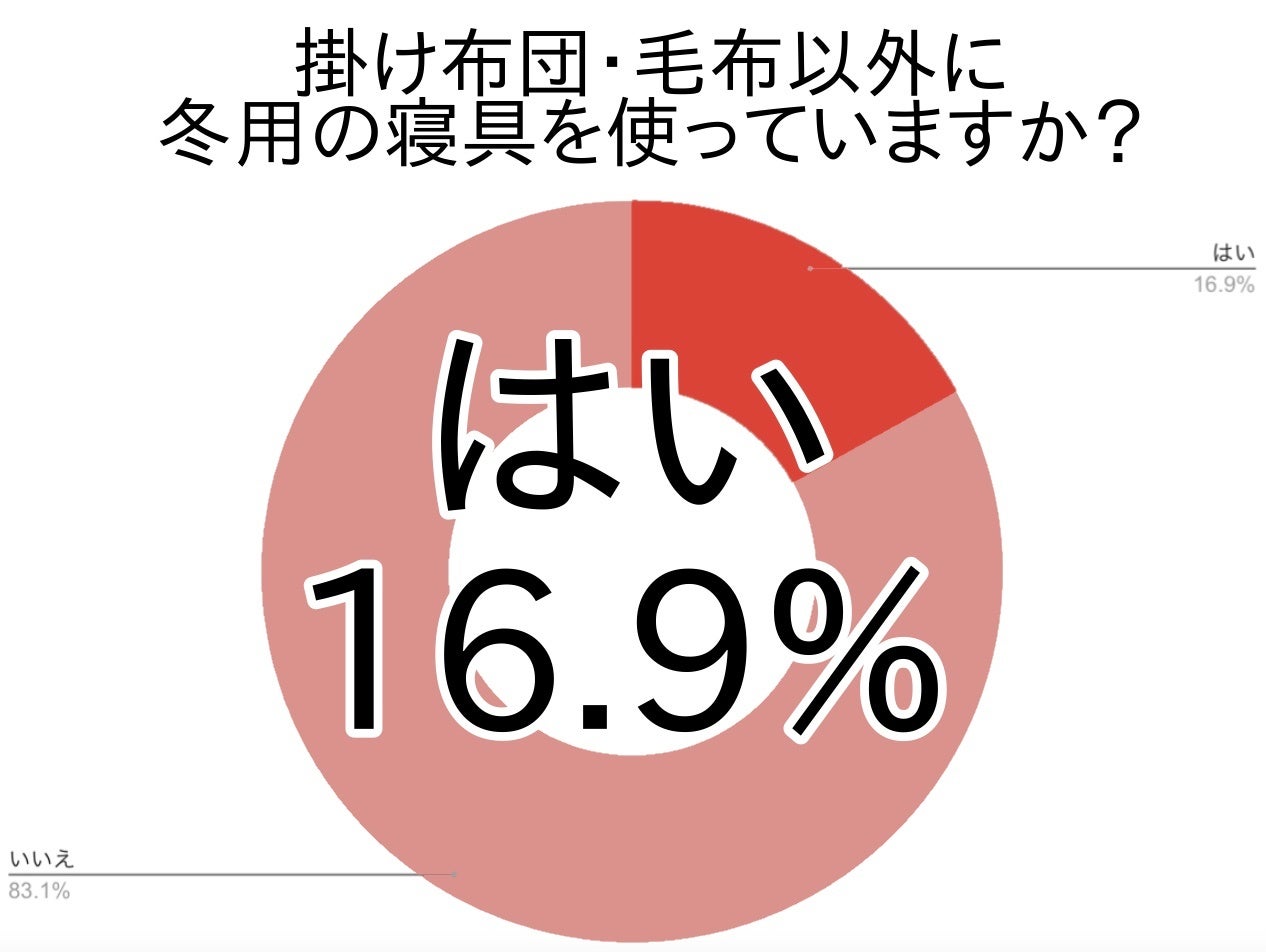 掛け布団・毛布以外に冬用の寝具を他にも利用していると答えた方は16.9%でした。