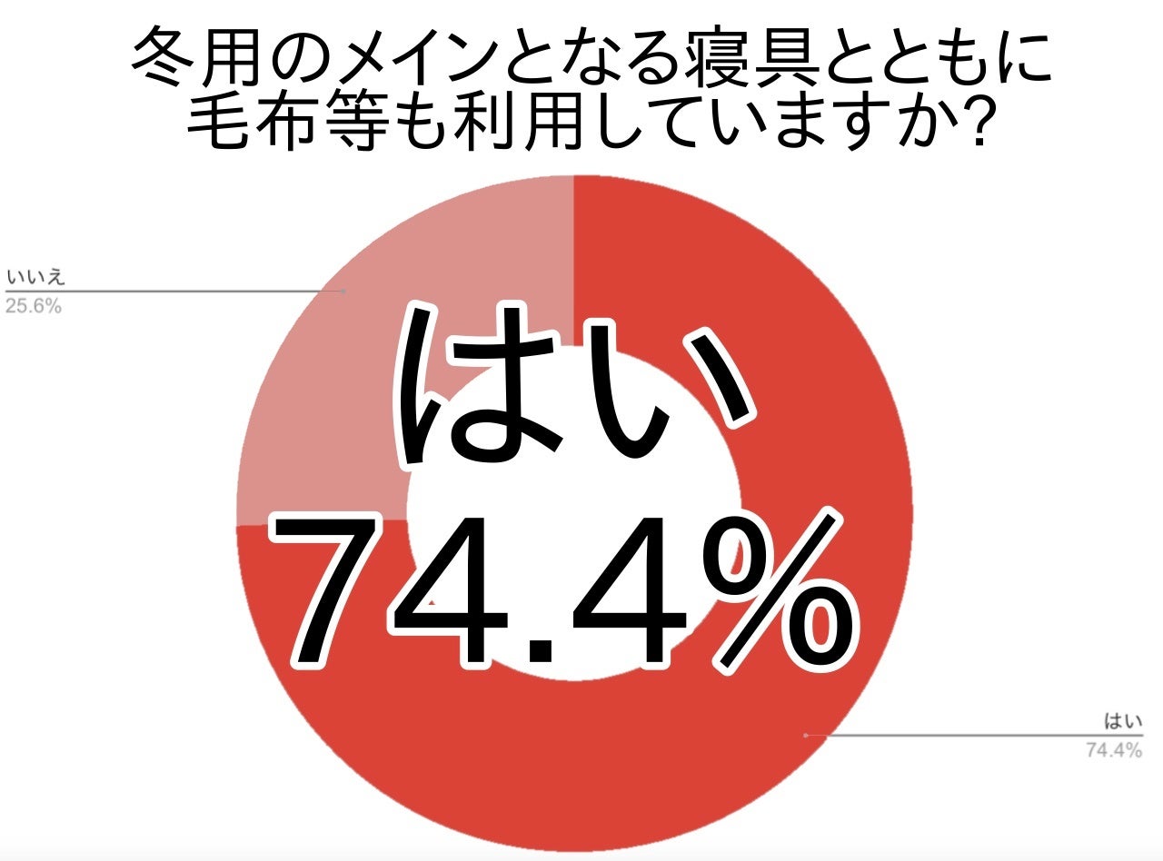 冬用のメインとなる寝具とともに毛布等を利用しているという方は74.4%にのぼりました。