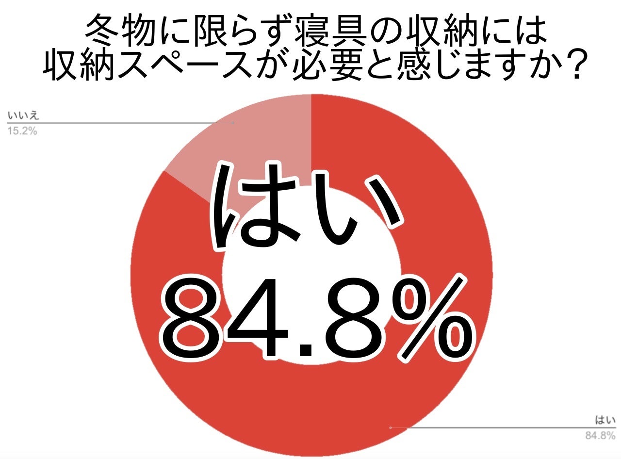 寝具の収納には季節問わず収納スペースが必要と答えた方は84.8%でした。