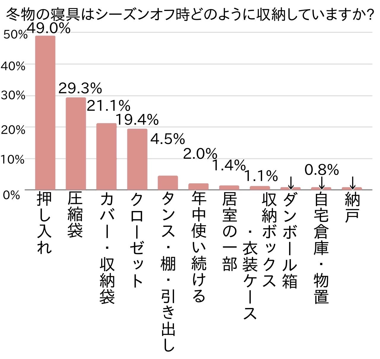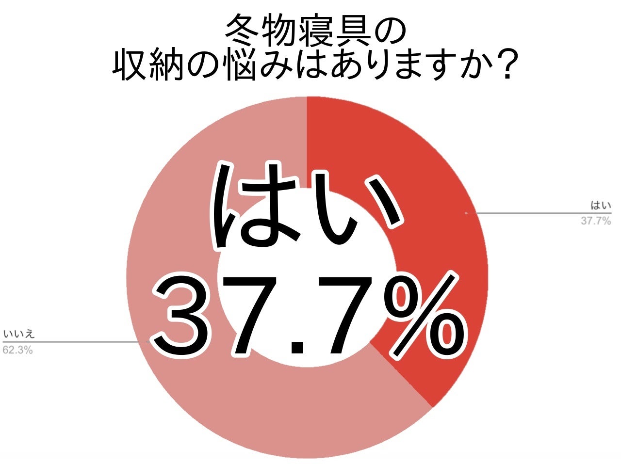 冬の寝具の収納方法を見ていくだけでも各家庭の苦労が一部にじみ出てきていますが、全体として、冬物寝具の収納の悩みを抱えている方はどれほどいるのでしょうか。