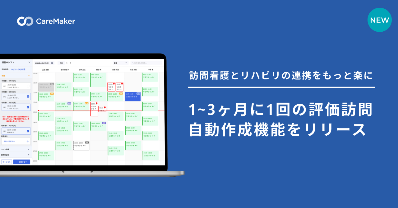 こうした顕在化している課題を解決するために、1〜3ヶ月に1回の評価訪問をまとめて自動作成できる本機能をリリースいたしました。