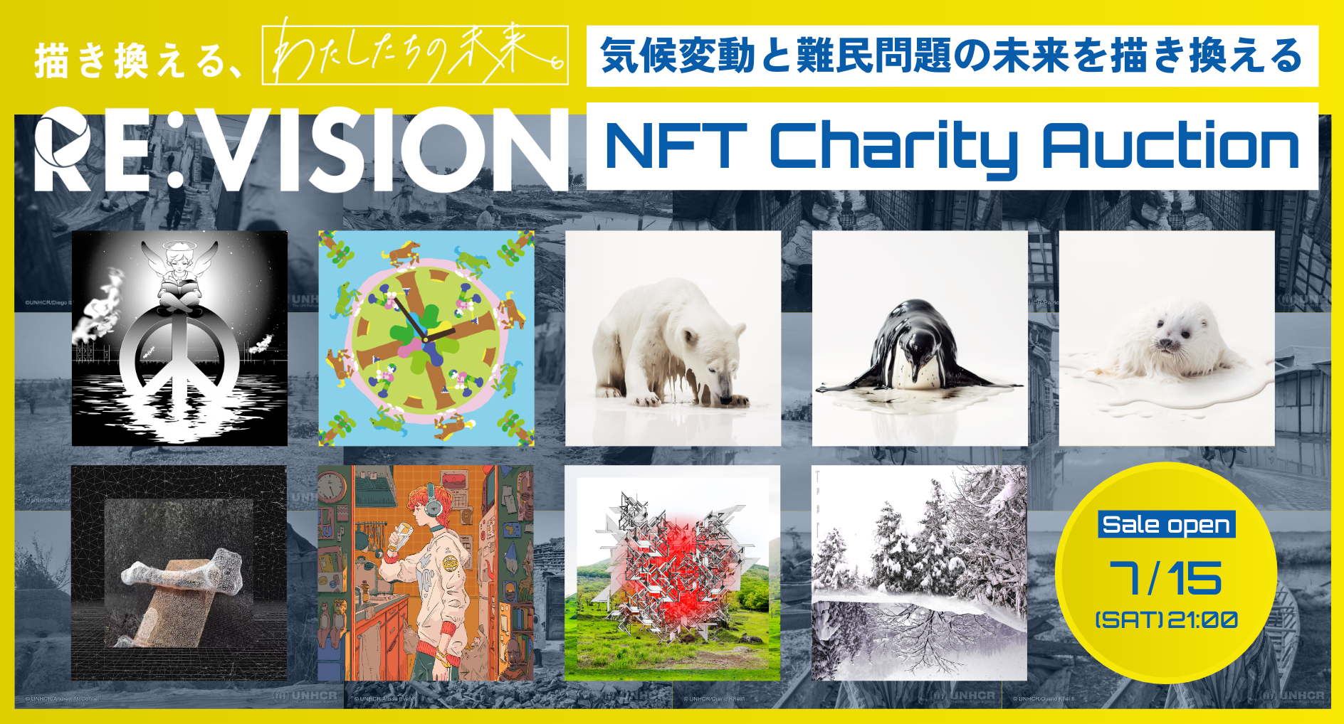 RE:VISION NFT チャリティアートオークションは、気候変動による難民問題の未来を描き換えるアートプロジェクト「RE:VISION ART PROJECT」が実施するチャリティオークション企画です。「RE:VISION ART PROJECT」では「web3と描き換える、社会貢献の未来。」を目標の一つに掲げており、それに賛同した企業やアーティストが参集し、今回のNFTチャリティアートオークションの実施に至りました。