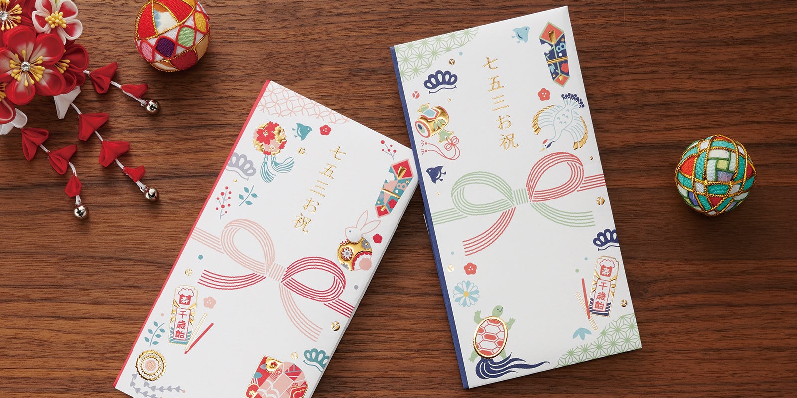 『七五三お祝多当』は、表書きや絵柄に立体感のある箔押しエンボスを施し華やかな雰囲気に仕上げています。また本体に描かれているイラストは長寿や幸福を意味する縁起物がモチーフとなっており、子どもの健やかな成長を祝う気持ちを込めてデザインされました。