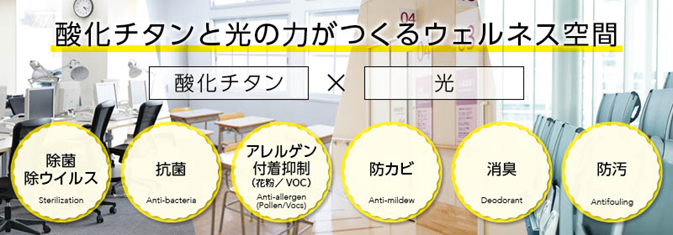 酸化チタンは光と反応し、効果を発揮させる、光触媒作用で空間をクリーンにします。