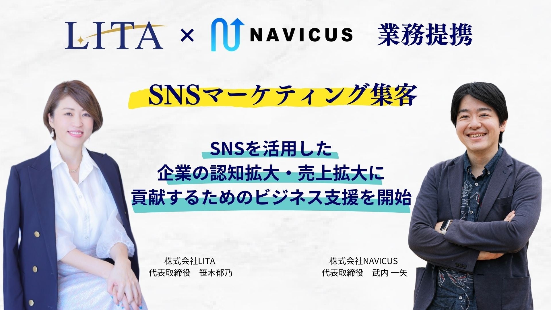 PR力を通じて、届けたい商品や実現したい想いの可能性を応援する笹木社長の取り組みに強く共感し、今回の協業を決めました。NAVICUSは、「明日が楽しみになる居場所をつくる」事をビジョンに掲げる、マーケティング支援会社です。ひたすら闇雲に情報を広げるのではなく、SNSやコミュニティの力で世の中をより良い方に“靡かす”事が存在意義と捉えています。また私自身も、「人の可能性の最大化」こそが人生最大のテーマと定めており、LITA社の「全ての人・企業の可能性開花に貢献する。」という企業理念にも、大きなシンパシーを感じています。