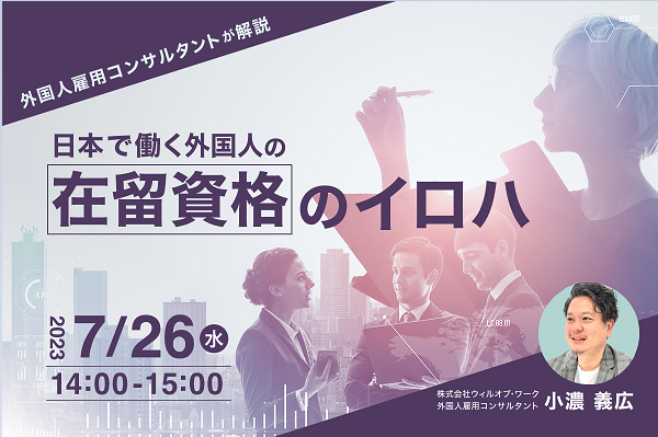 本セミナーでは、当社の外国人雇用コンサルタントである小濃 義広が、統計からみる外国人労働者、在留資格の特徴についてお話しします。