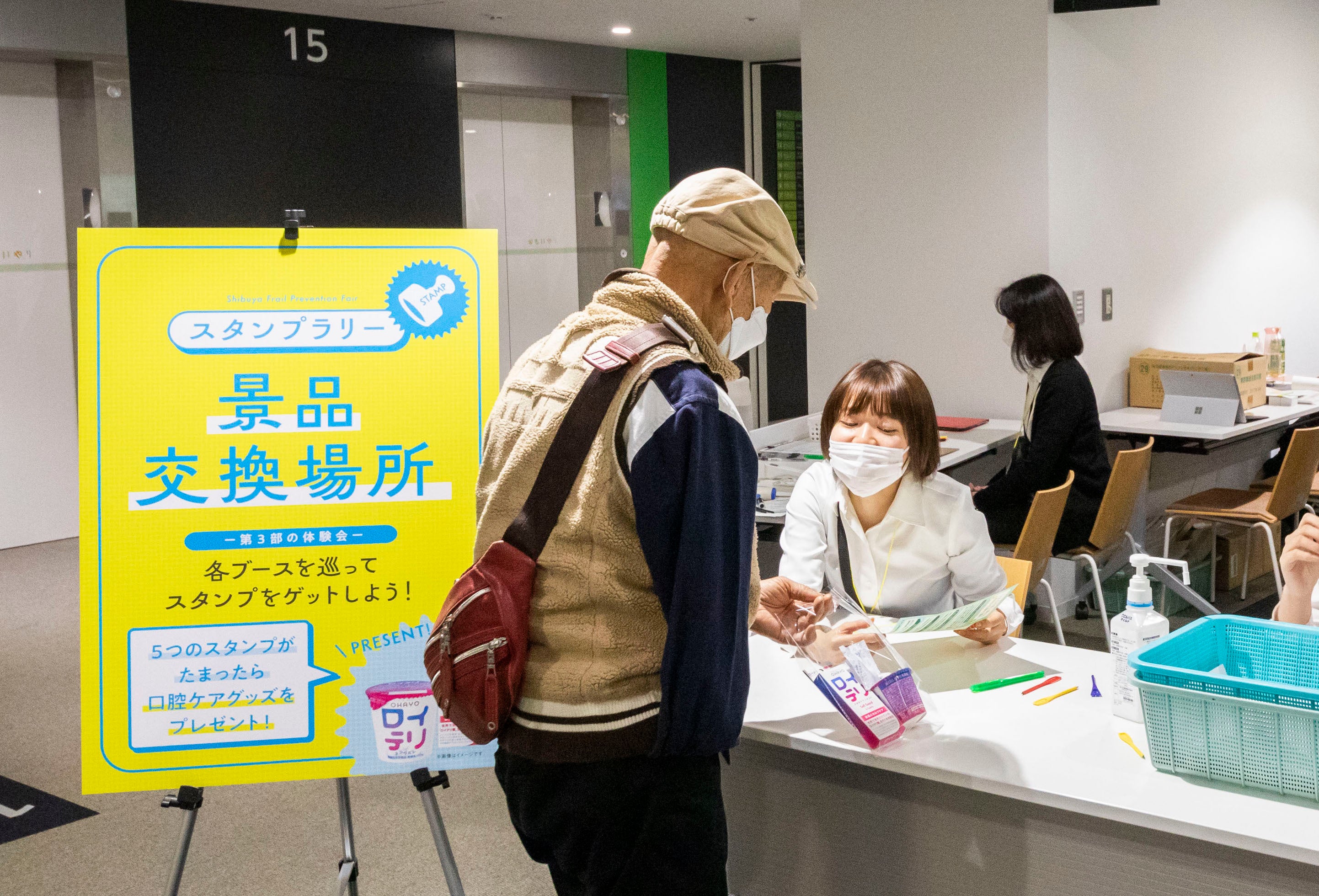 5つのスタンプがたまったら、受付で口腔ケアグッズをプレゼント!