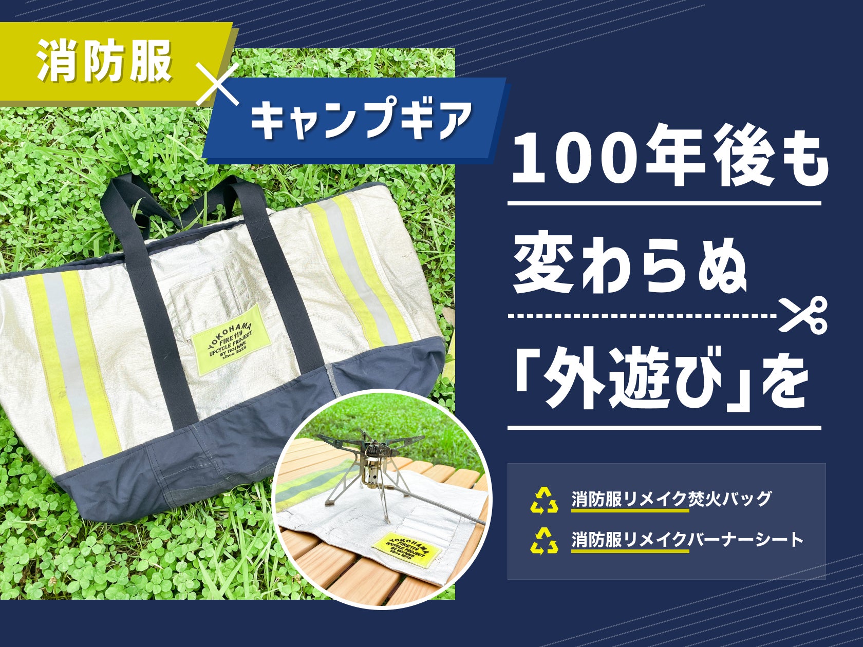 横浜市消防局とのコラボで実現!廃棄消防服を活用したキャンプギアを7/14よりMakuakeで予約販売開始!