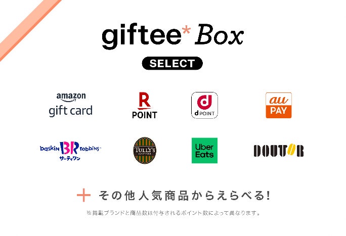 3.giftee Box select内のポイント交換レートは商品により異なります。記載された必要ポイント数をよくご確認の上、商品と交換ください。