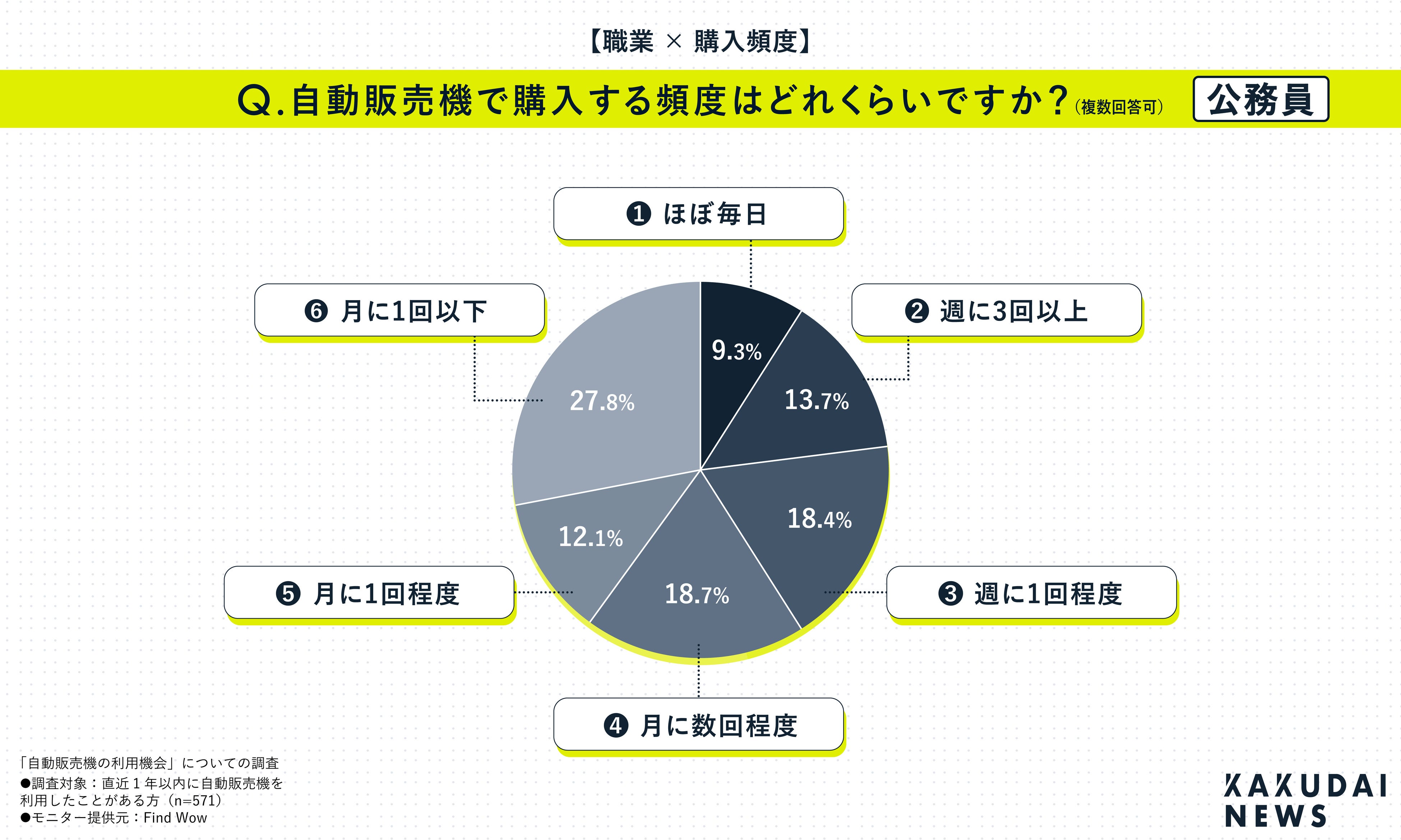 一方、公務員の方は4人に1人以上が『月に1回以下』で多い結果となりました。