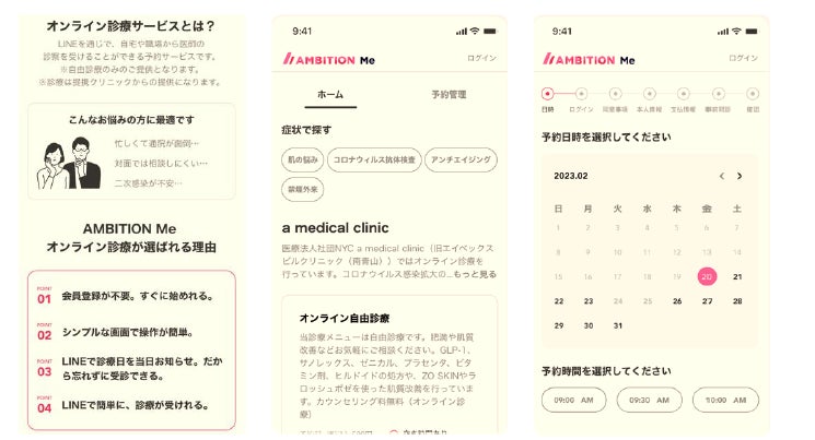 一般的な自費診療医療サービスを提供しているクリニックへシームレスに連携し「AMBITION Me」内で簡単に予約することができ、その後LINEを活用し簡単にオンライン診療を受診する事が可能となります。その上で専門的な知識を持つ医師が入居者の症状を詳細にヒアリングし、必要なアドバイスや治療法を提案します。さらに、迅速で便利な医療サービスを実現し、入居者の皆様の健康を支えます。